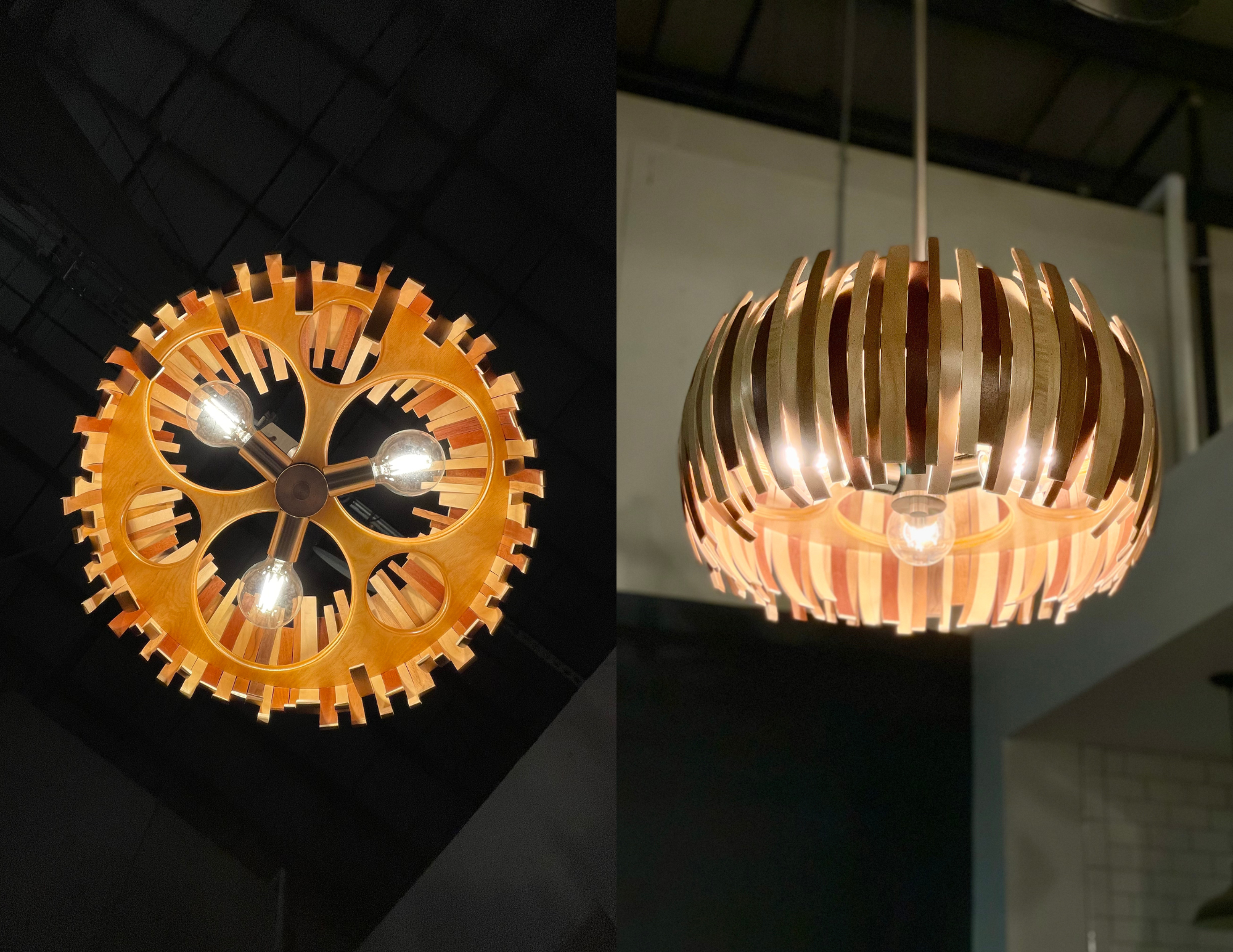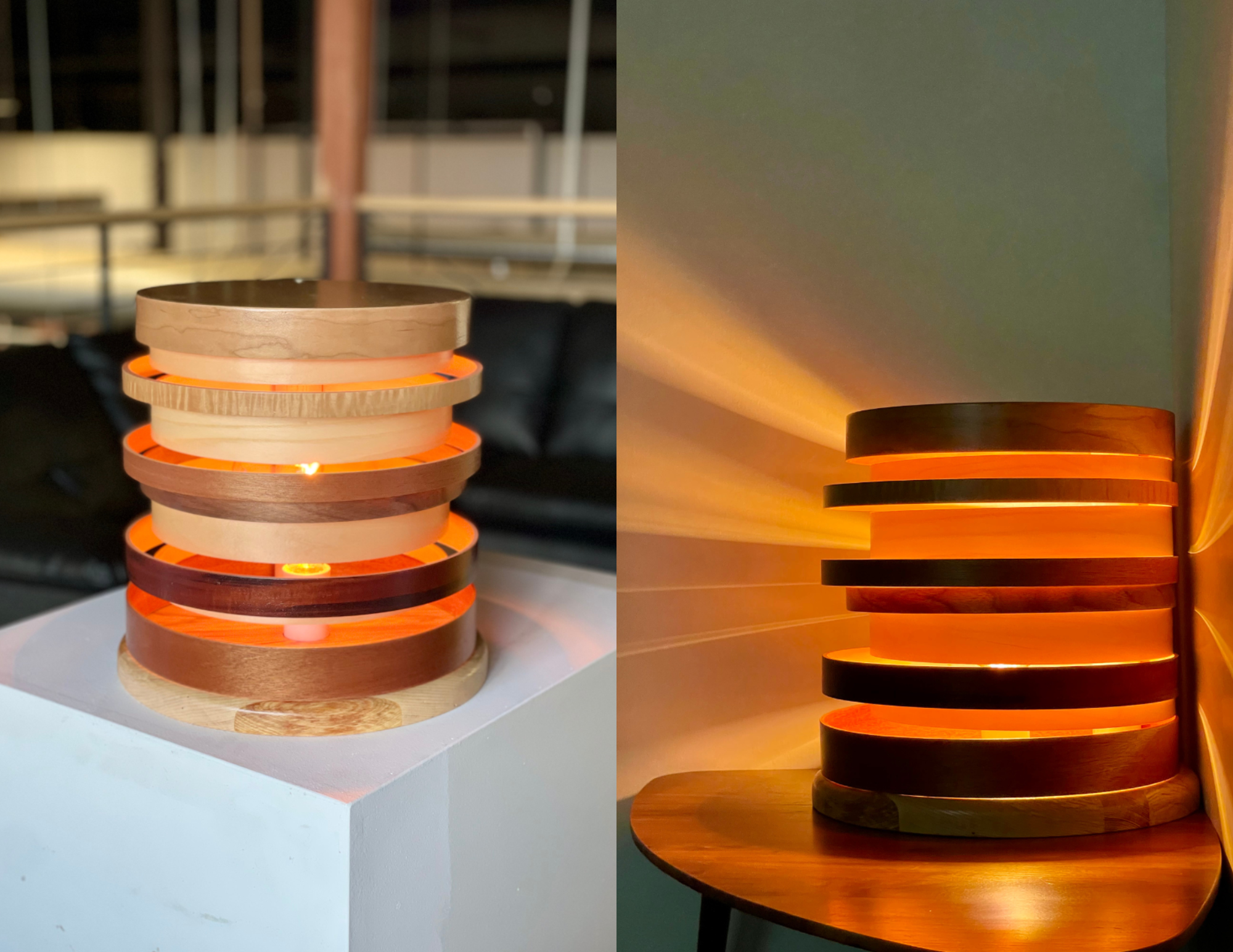 a.j. zone design creates functional decor and lighting sculpture, meticulously crafted from upcycled drum shells and primarily found materials. shells are sourced via our partnership with a boutique drum builder, the shells are salvaged excess from the drum building process. the wood segments are painstakingly milled by hand and arranged to create stunning visual patterns. an opportunity to create from waste material is an opportunity to create a more balanced planet.